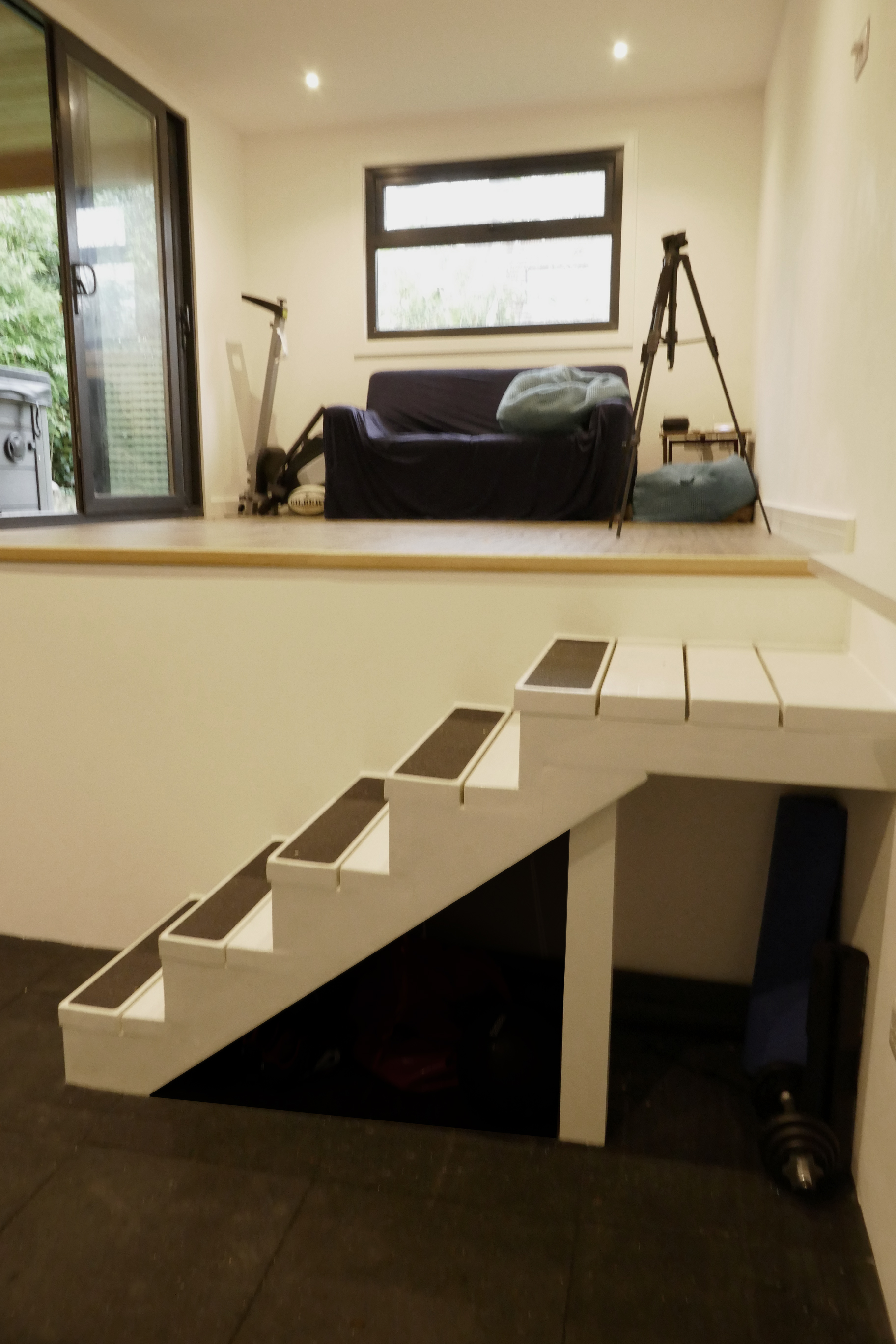 An enthusiastic young couple desired a cost-effective garden gym to meet their exercise needs. This bespoke outbuilding also features a separate storage room, primarily used to store their bicycles. Cladded with pressure-treated pine tongue and grove cladding with a separate bespoke door for the storage room